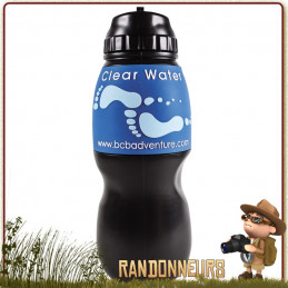 GOURDE FILTRANTE : Rien de plus pratique et rapide que de bénéficier d'une eau potable en direct grâce à la combinaison entre une gourde et un filtre portable intégré. Récolter de l'eau dans un ruisseau, une mare, un étang directement dans sa gourde survie et boire directement de l'eau potable au goulot de la gourde. Un avantage de rapidité et de bénéficier d'eau potable au fur et à mesure de votre périple. Il vous est même possible, pour anticiper vos besoins, de stocker de l'eau dans un jerrican souple ou une autre gourde randonnée qui ne bénéficierait pas de filtre en vue de transvaser l'eau vers la gourde filtre. Un filtre à charbon en supplément permettra d'éliminer les mauvais goûts ainsi que certains pesticides et métaux lourds.