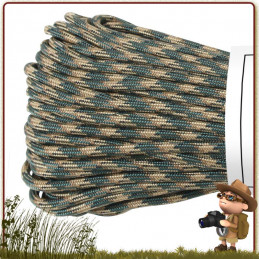 Paracorde Polyester 30 m Rothco Camo - Bobine de parachute en polyester Cord dite Paracorde 550 de 30 mètres, gaines nylon avec 7 torons intérieurs de résistance 250 kg. L'outil de survie et bushcraft multi fonction à utiliser tel quel ou en tressage.