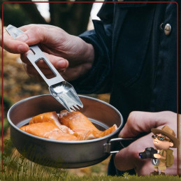 Idéal en randonnée légère, le couvert titane The muncher propose près 8 fonctions pratiques au camping et bivouac léger :