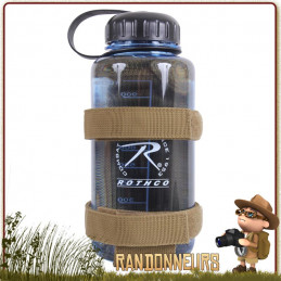 Porte Gourde Militaire MOLLE Coyote Rothco - Ce porte gourde et bouteille, léger et robuste, permet de transporter une gourde militaire et randonnée type Nalgene sur un sac à dos armée grâce au système de fixation MOLLE. Passant ceinture et maintien de la gourde par une élastique à ouverture facile et sécurisée