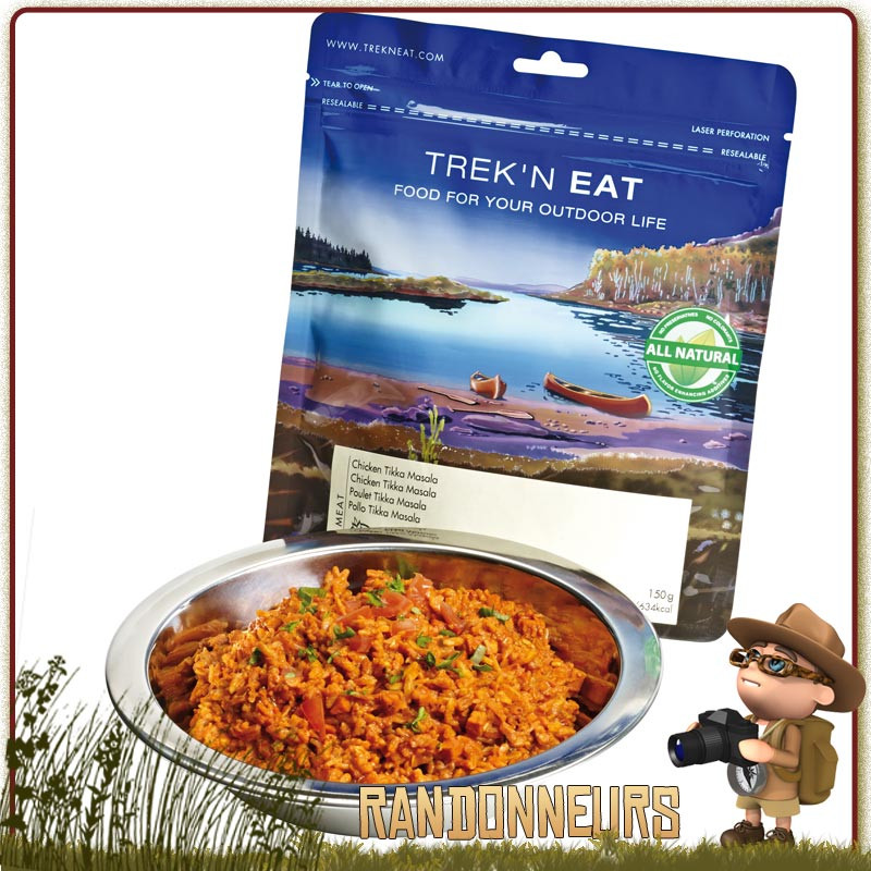 TreknEat le spécialiste des repas lyophilisé propose un plat à base de viande "POULET TIKKA MASALA TREK'N EAT" lyophilisé équilibré pour le randonneur