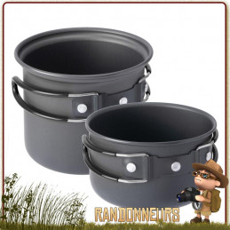 Popote Randonnée Aluminium Small CAO - Ensemble Set Popote Aluminium de randonnée pour une Personne CAO. Popote Randonnée en alu composée de 3 pièces (faitout, poele, pince preneuse). Set popote Alu 50 cl pour une personne en randonnée légère.