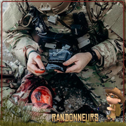 Conditionné sous emballage étanche, individuel et stérile, la compresse Chito Sam 100 permet un accès facile du pansement de soins d'urgence sur une plaie ouverte sur le terrain